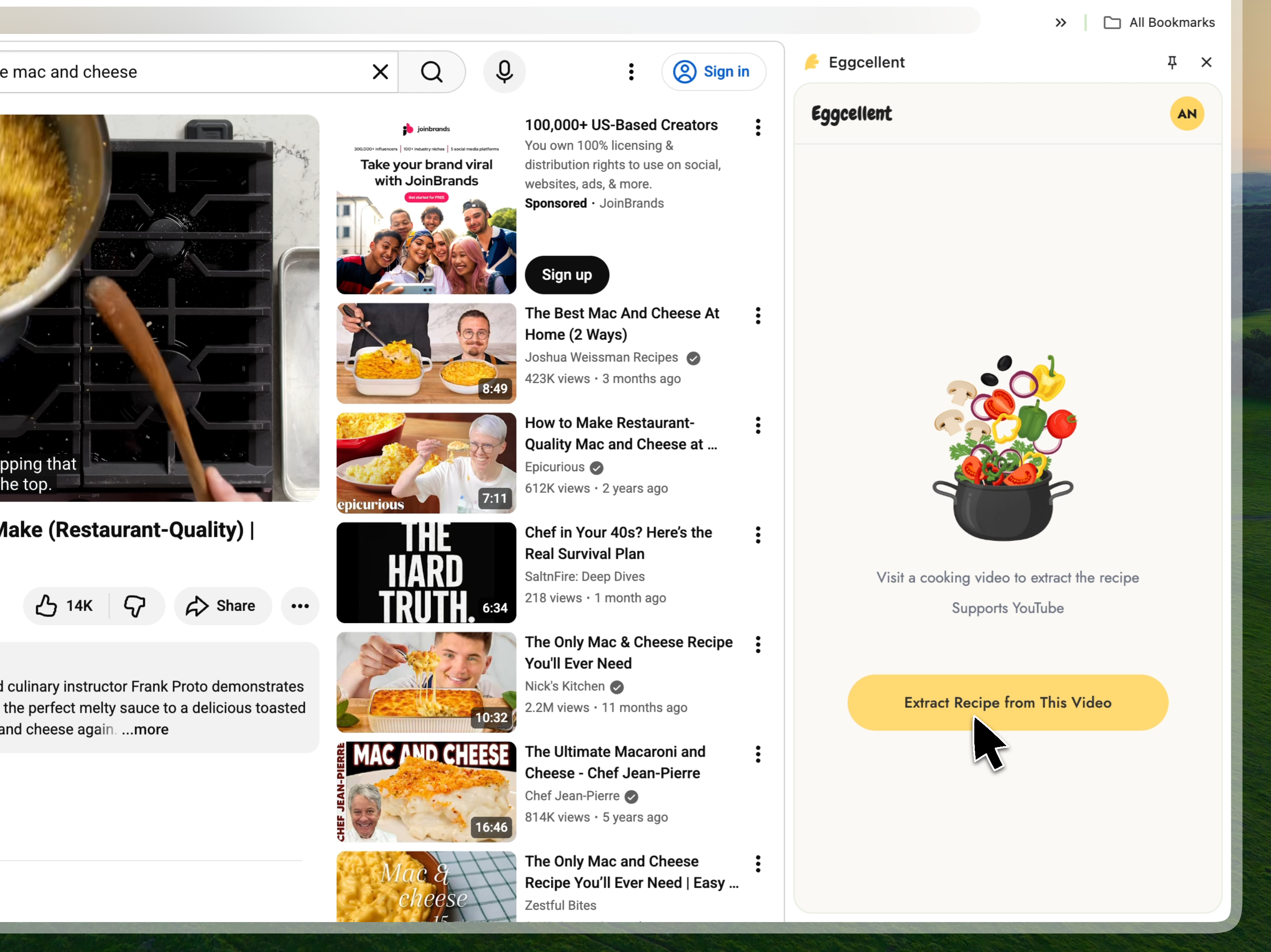 Pro tip: The extension works best with videos where the creator verbally mentions ingredients and steps. Most popular cooking channels like Tasty, Bon Appétit, Joshua Weissman, and home cooks all work great.